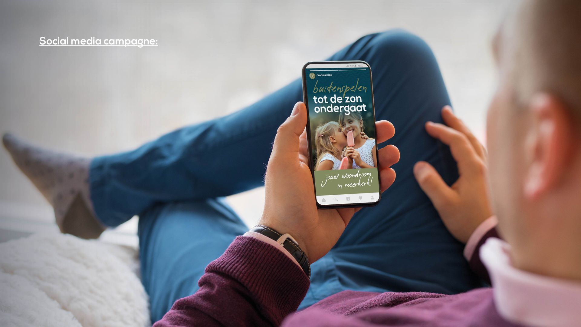 Met onze gebiedspromotie wisten we Droomweide stevig op de kaart te zetten. We creëerden extra bekendheid bij de jonge doelgroep, onder meer door ons te richten op huizenzoekers uit de gehele regio. We benadrukten het bijzondere karakter van Droomweide en de prachtige setting van Meerkerk. Op die manier breidden we de doelgroep uit en bereikten we een groter publiek van potentiële huizenkopers: mensen die hun kinderen graag fijn op zien groeien terwijl ze volop genieten van het leven. Missie geslaagd!