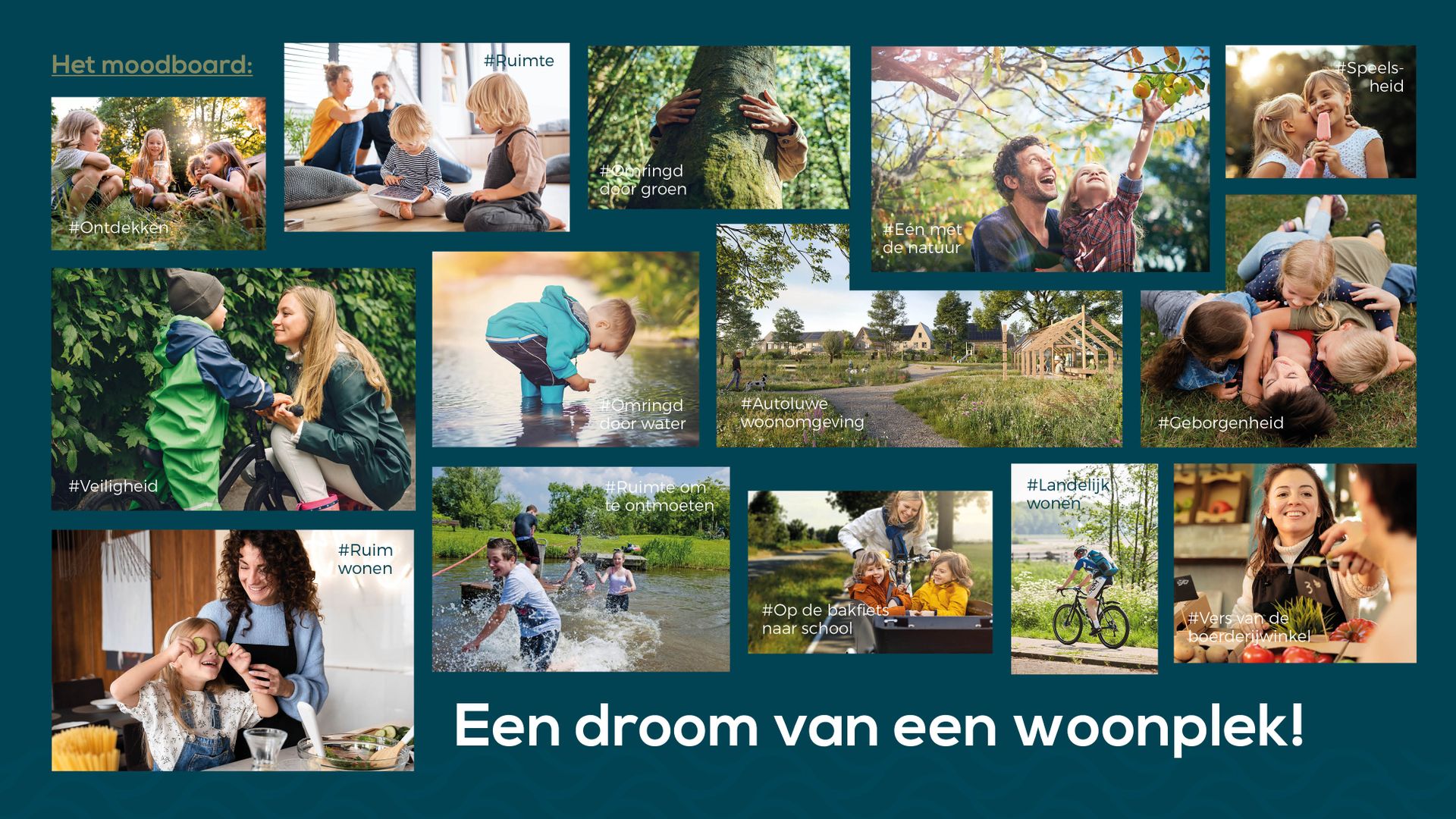 Droomweide is geen doorsnee nieuwbouwproject dat uitsluitend draait om een verzameling van woningtypes. Wat het plan vooral uniek maakt is de opzet van harmonieuze buurtjes en de manier waarop de natuur het gebied ingetrokken wordt. Je woont hier niet in de zoveelste nieuwbouwwijk, maar in een prettige omgeving waar je volop geniet van het buiten zijn. Kortom, een droomplek voor gezinnen! Deze unieke kenmerken pasten we toe in de verschillende onderdelen van onze marketingcampagne: