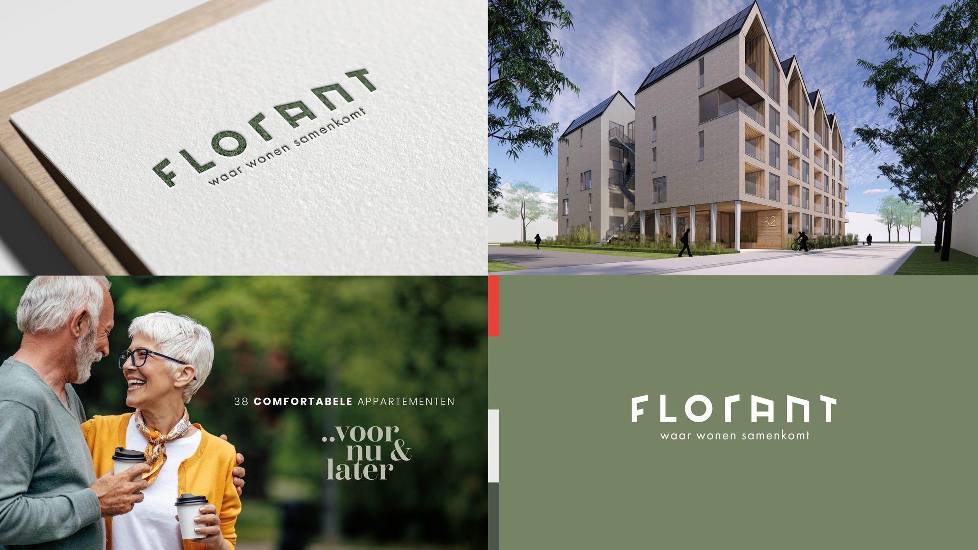 De volgende stap was het verzinnen van een naam. Eentje waardoor het project direct zou gaan leven onder toekomstige bewoners. Met kernwaarden als verbinding, groen, toekomstbestendig, ontmoeten, circulariteit en mobiliteit in ons achterhoofd kwam de naam Florant naar boven. Als afgeleide van het woord ‘florissant’ een leuke knipoog naar de oudere doelgroep. Het gaat tenslotte om mensen ‘in de bloei van hun leven’. Daarnaast verwijst de naam naar de rijke flora in de binnentuin van het appartementengebouw en de tuinen ertegenover.