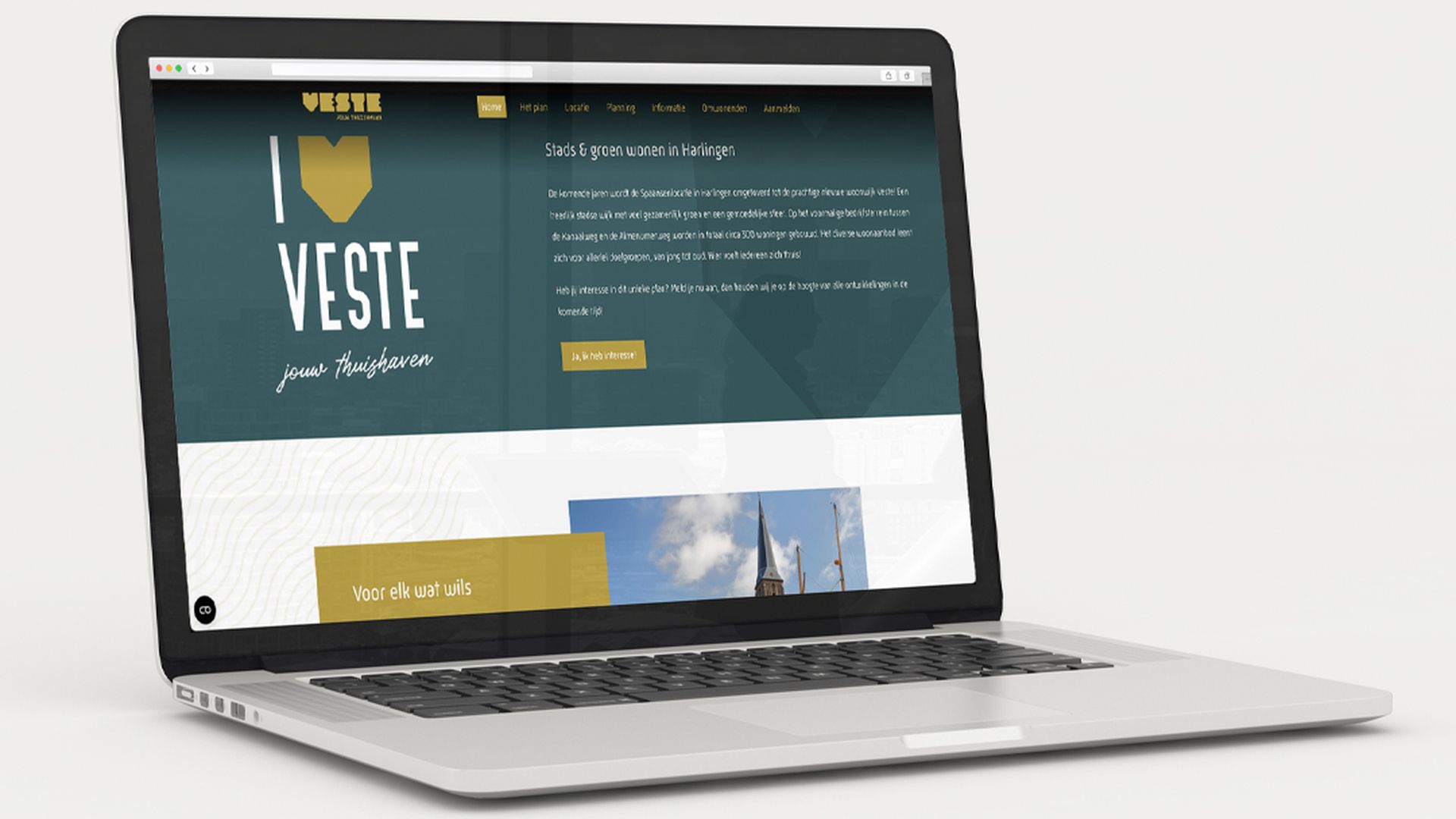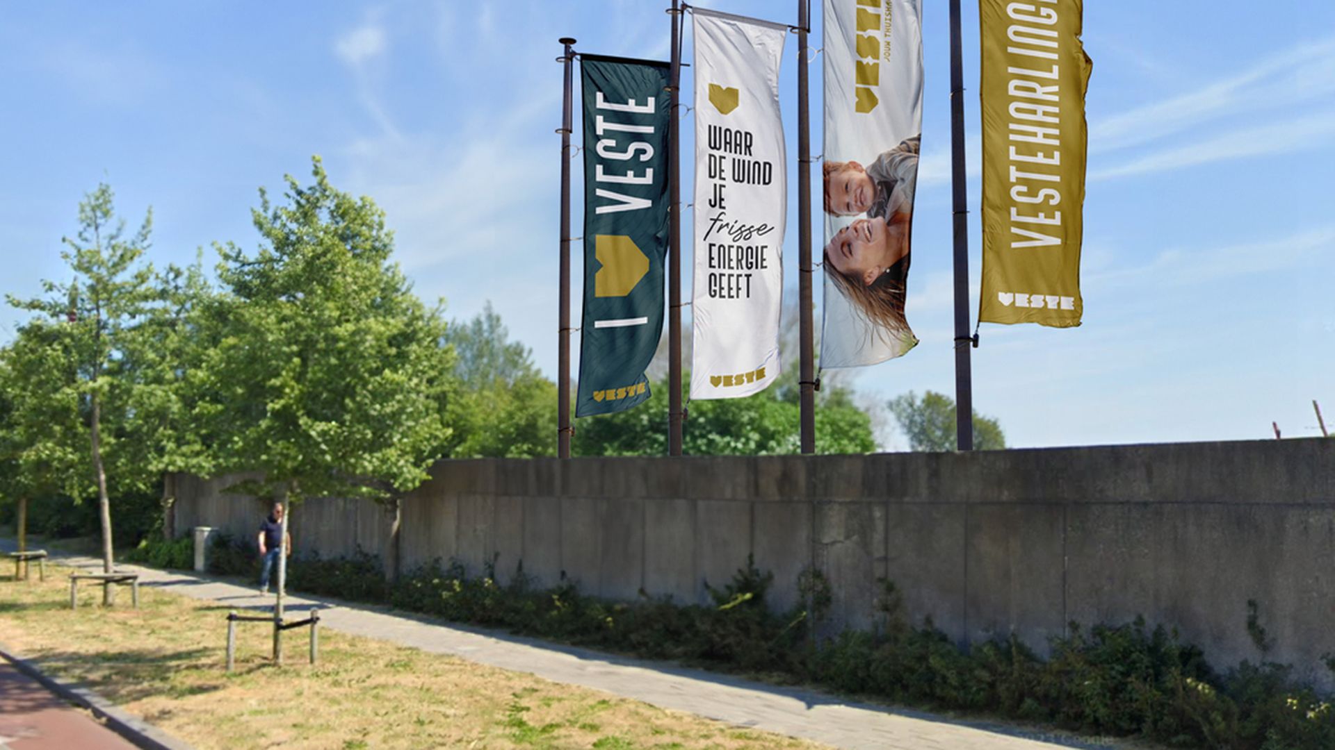 Als leidraad voor de gehele communicatie ontwikkelden we het concept ‘Veste’, waarbij de naam factoren als geborgenheid en je thuis voelen symboliseert. In het logo verwerkten we een hartvormige ‘V’ die dit warme gevoel versterkt. In de lijn van het concept dat we bedachten, realiseerden we vervolgens diverse middelen: