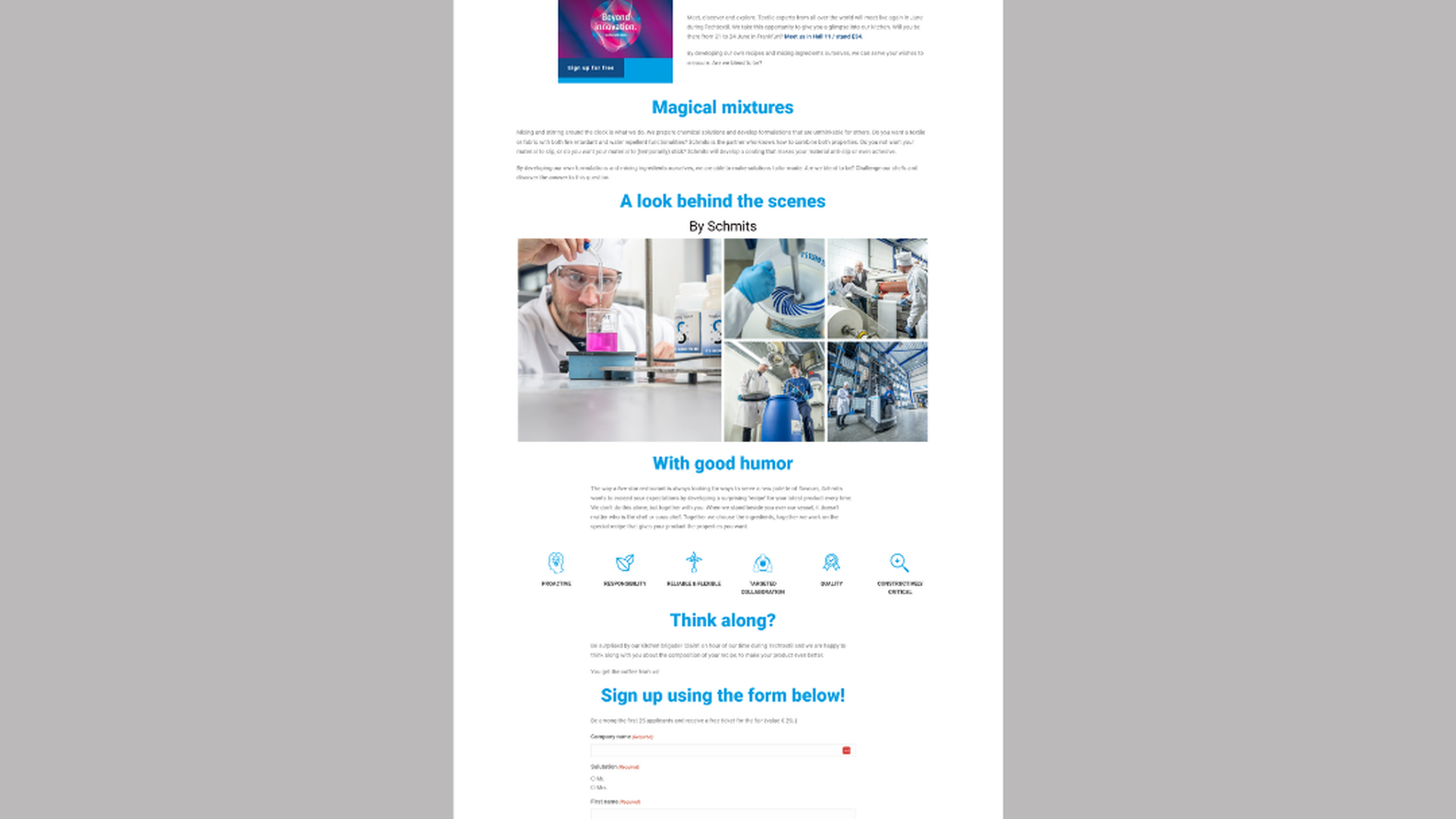 Onze eerste ervaringen met de Cialdini aanpak zijn veelbelovend! Een goed voorbeeld hiervan is Schmits Chemical Solutions: door de klantreis van dit bedrijf te doordrenken met Cialdini's principes, zagen we een significante verbetering in de aanmeldingsratio’s voor hun beurscampagne. Zo hebben we op de website bewijslast door middel van een quote toegepast, om in te spelen op autoriteit. Ook hebben we hebben gebruik gemaakt van de Jenga techniek. Dit betekent dat je een tekst gaat reduceren tot een minimum, zodat de bezoeker niet wordt afgeleid. Daarnaast hebben we het gewenste gedrag beter benoemd in de teksten én concurrerende prompts verwijderd.