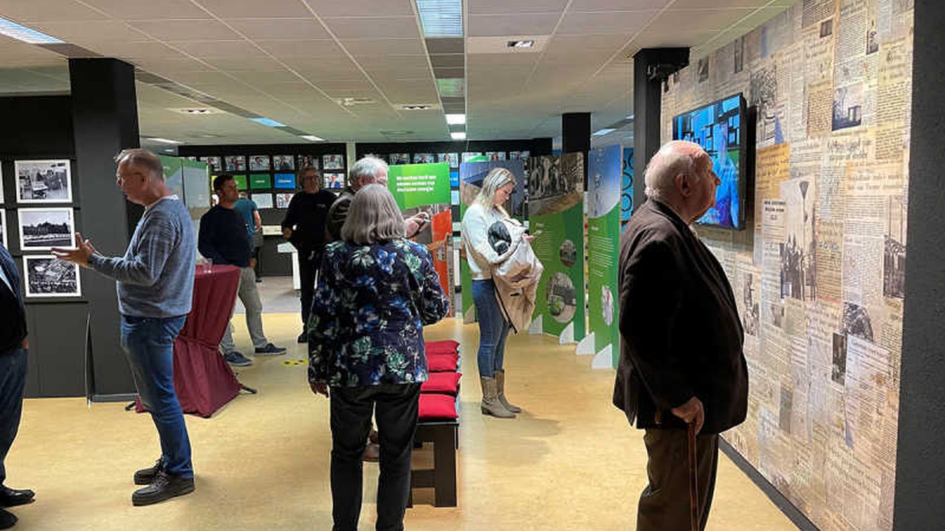 Stijlgenoten heeft geholpen bij het inrichten van de expositie, bij de look & feel en alle uitingen eromheen. Zo zijn er PVC doeken ontworpen waarop een tijdlijn van nu tot 55 jaar later staat afgebeeld en hangt er een PVC doek met oude krantenkoppen achter een televisie waarop oud-werknemers vertellen over hun bijzondere momenten bij Cogas.